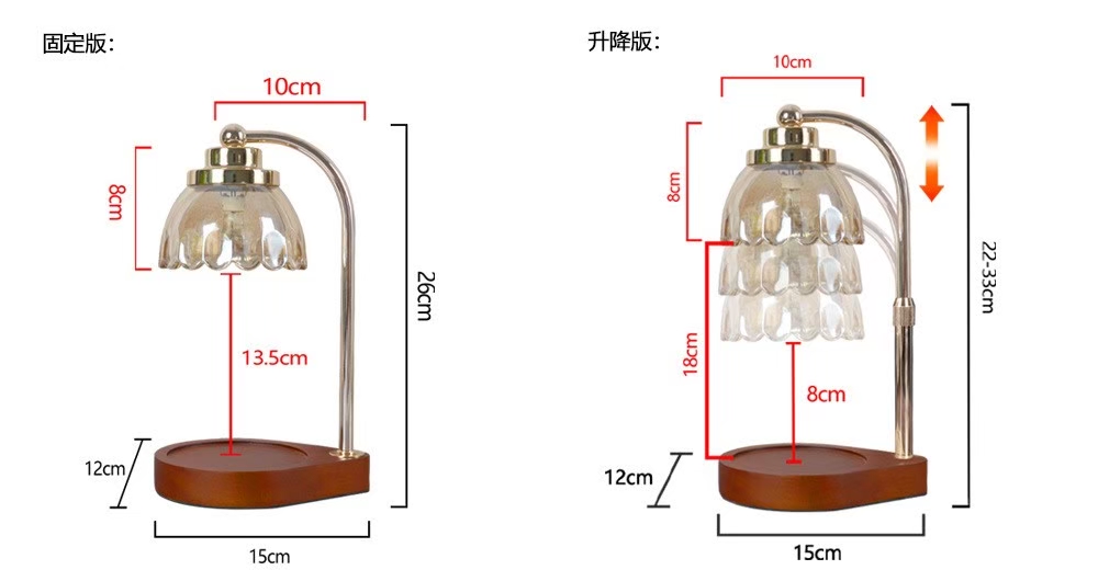 木頭燈罩的款式摸起來圓潤質感,深受香友喜愛。但是因為木頭散熱效果沒有金屬來的好,燈泡亮度和熱度的效能受到木頭燈罩的限制(35W),對於一般市售的蠟燭的融化效果,需要多詢問和注意,需要多久時間才能夠將蠟燭表面完整融化。木頭本身的特質,受到熱脹冷縮多次後,會有龜裂或扭曲、變形的疑慮,耐用度也需要多注意。